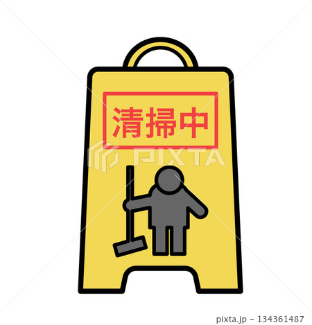 イラスト素材: 清掃中を示す業務用サインスタンドのイラスト