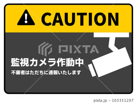 防犯カメラ作動中 空き巣 痴漢 万引き防止対策用の監視カメラ作動中の看板のイラスト