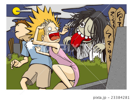 日本のお化けと肝試しで怖がる女の子