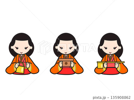 三人官女のキャラクターイラスト 白背景・ベクター 桃の節句