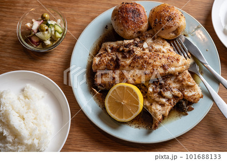 天然物の平目(卵巣、肝、切り身、胃袋、皮)