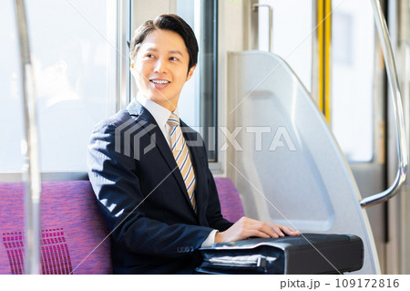 通勤電車のミドルのビジネスマン 撮影協力「京王電鉄株式会社」
