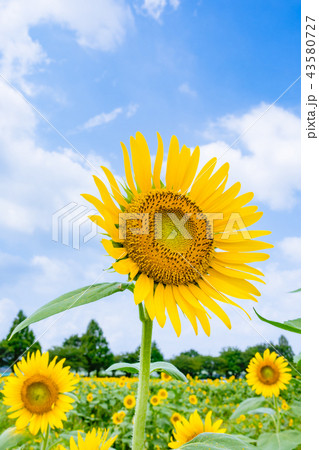 青空と太陽のようなヒマワリが咲く座間ヒマワリ祭り
