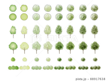 若々しい新緑の木の素材【横から】【上から】【線あり】