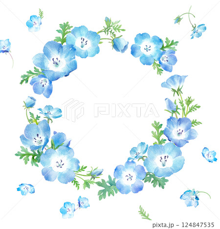ネモフィラの水彩イラストで構成した、円形装飾フレーム。