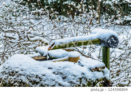 京都大原 雪の宝泉院 盤桓園の手水鉢