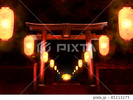 たくさんの火の玉が飛ぶ神社の連なった鳥居