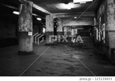 博物館動物園駅 廃駅の構内 白黒フィルム画像