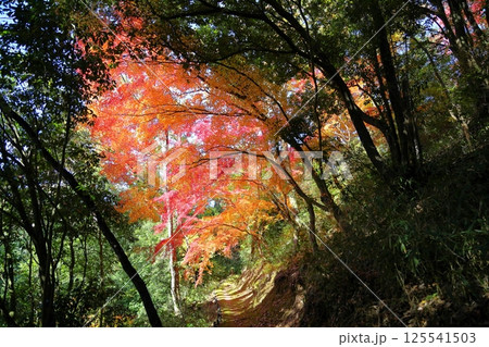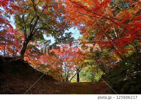 鮮やか 紅葉もみじのトンネル