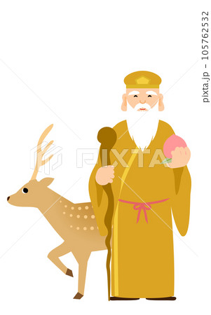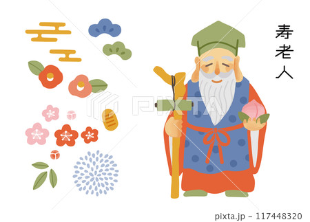 おめでたい色味のシンプルな寿老人のベクターイラスト