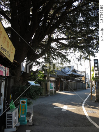 台東区谷中の寺町の風景(ヒマラヤ杉と延壽寺山門)