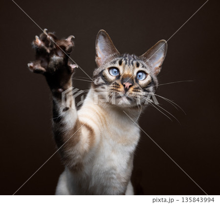 bengal cat raising paw with extended claws