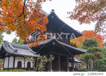 京都東山の秋 建仁寺 紅葉に包まれた三門(望闕楼)