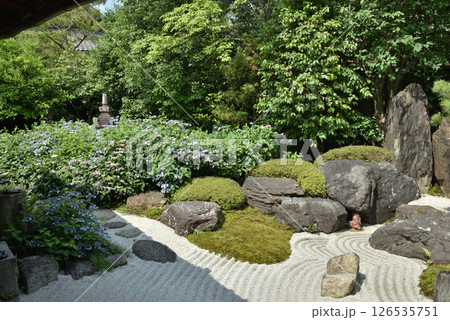 霊源院の庭に咲く甘茶の花 京都府