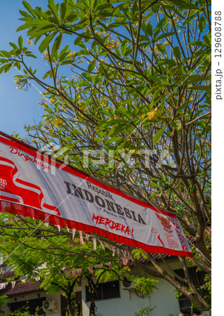 インドネシア独立記念日(8月17日)の装飾が施された住宅の外観
