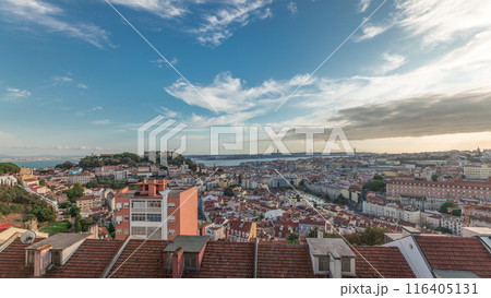 Panorama showing Lisbon famous aerial view from Miradouro da Senhora do Monte tourist viewpoint timelapse
