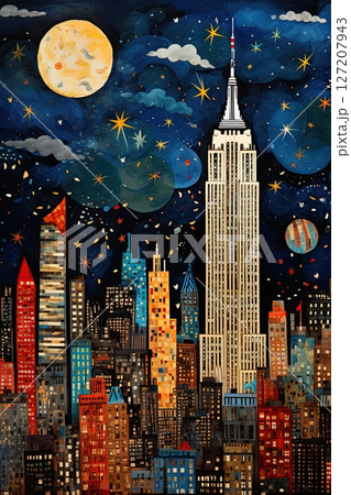 New York city skyline. Cityscape of Manhattan in the night. Abstract poster design. Generative Ai