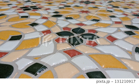 This colorful mosaic tile pattern features vibrant colors and intricate designs showcasing artistry