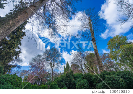 Outdoor Gardens of La Alhambra Spain with Tall Trees.