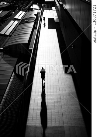 長く伸びる影と歩く人のシルエット 〜都市の静寂と時間〜