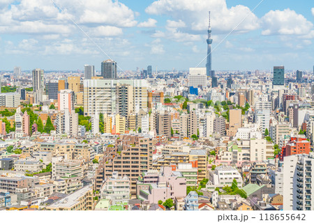 日本の東京都市景観 鶯谷駅前のホテル街などを望む