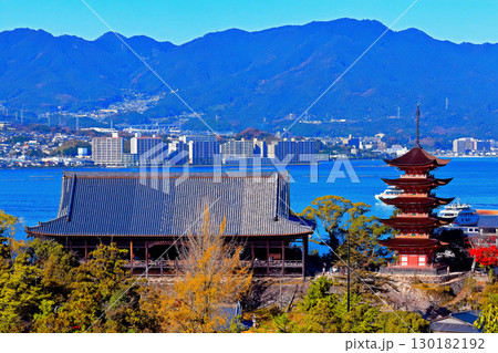 広島県 秋 宮島 五重塔と千畳閣