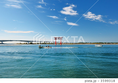 静岡県 弁天島海浜公園から臨む鳥居とその向こうに浜名バイパス