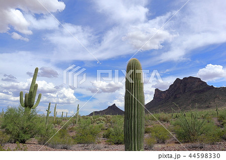 アリゾナのサボテンがある風景 弁慶柱 サワロ
