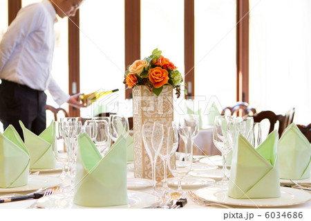 テーブルセッティングとウェイター