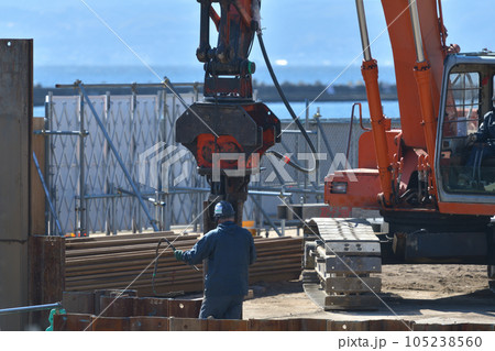 工事現場 矢板引き抜き作業風景
