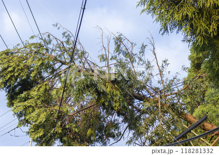 静岡県伊豆の国市狩野川 台風後の千歳橋の橋脚に引っかかった漂流ゴミ