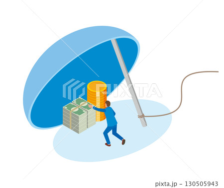 アイソメトリックな机が倒れてドアが開かないイメージ素材