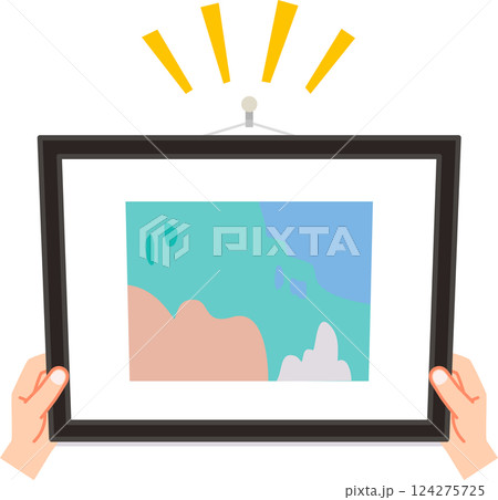 額縁を壁のフックにかける手