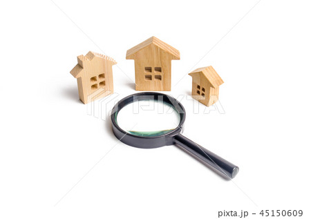 three wooden houses on a white background.