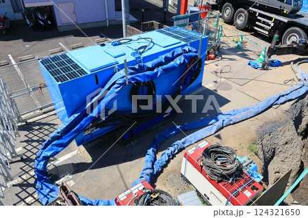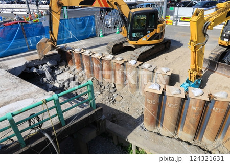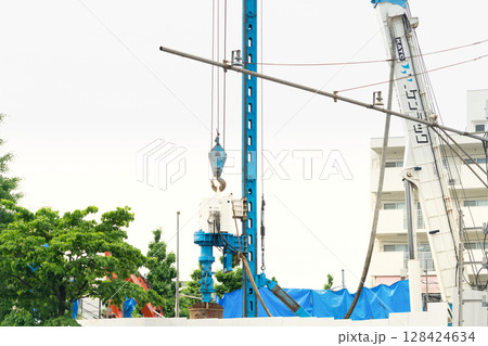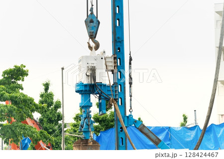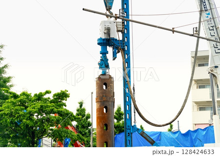 既存杭引抜工事・ビル解体現場