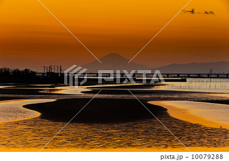 千葉県の富士山のある風景・木更津市「引潮の紋様と富士山」