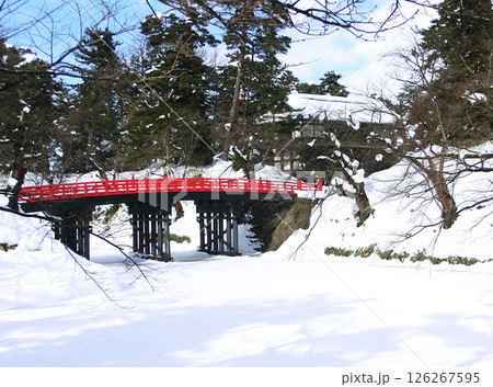 青空の弘前城 杉の大橋と南内門 弘前市 青森県