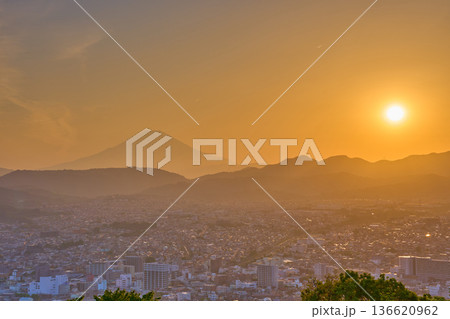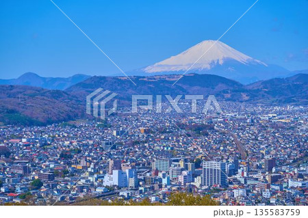 秦野市の風景 弘法山公園から望む秦野市街と富士山