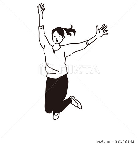 サンタの衣装を着てバンザイしている女の子の手描きイラスト