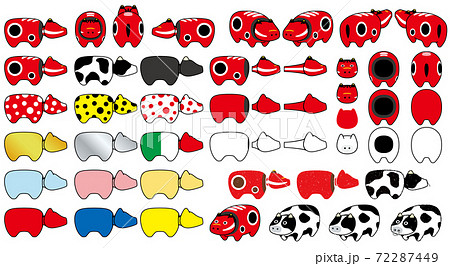 カラフルな赤べこのイラスト素材
