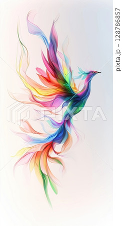 Colorful Phoenix Bird in Flight, Digital Illustration with Spread Wings Facing Right