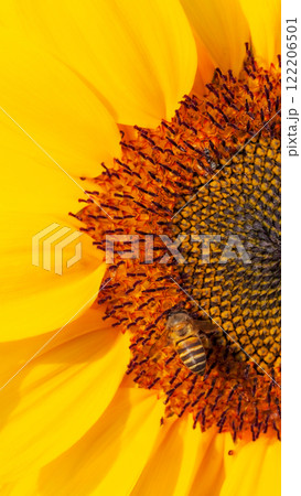a sunflower's intricate core and a bee gathering nectar, highlighting nature's beauty and the role of pollination.