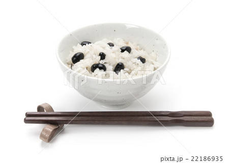 茶碗に盛った黒豆おこわと箸