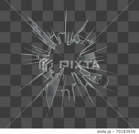Broken glass. Cracked window. Texture of realistic destruction hole in transparent damaged glass. Vector realistic shattered glass template