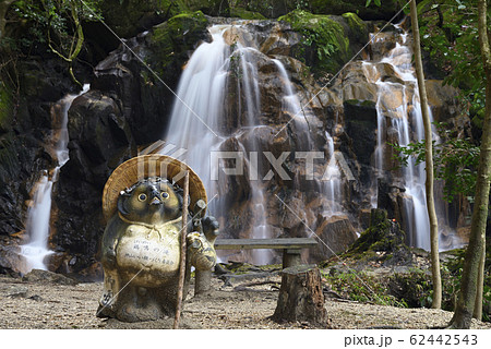 鶏鳴の滝 信楽焼のタヌキ(滋賀県甲賀市信楽町)