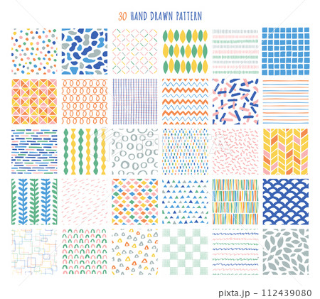 カラフルな手描きの幾何学模様のシームレスパターンコレクション