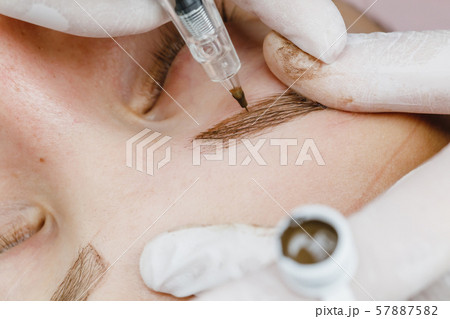 Cosmetic procedures for the treatment of eyebrows. Microblading in the beauty salon. Professional