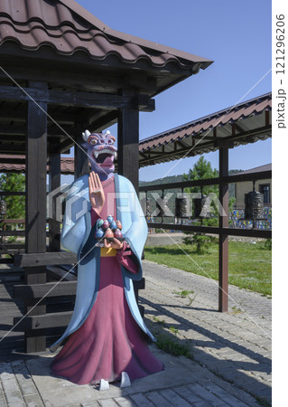 Wooden sculpture 'Guru Drakur' in tradition of Buddhist culture in Buryatia