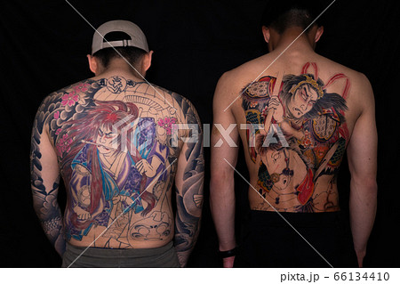 入れ墨の男性 背中 日本伝統刺青