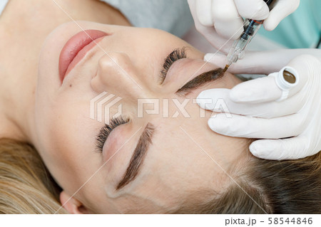 Cosmetologist making permanent makeup